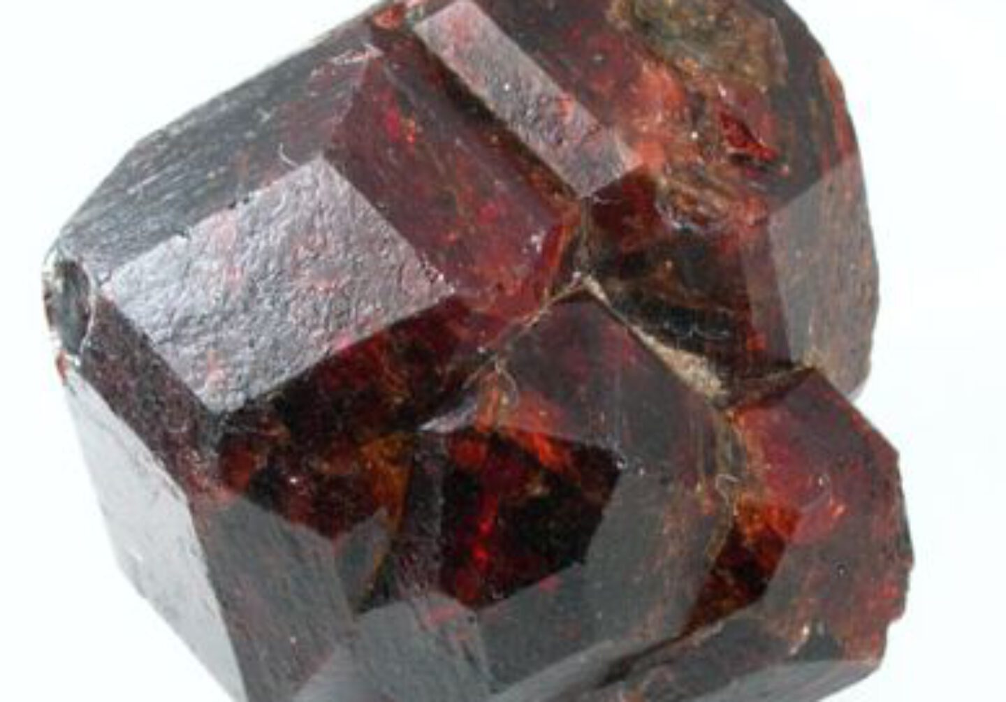 Roter Granat vs. roter Spinell: Spinell ist kubisch wie Granat, aber leichter (3,58 g/cm³); Lichtbrechung 1,718; kein Pleochroismus