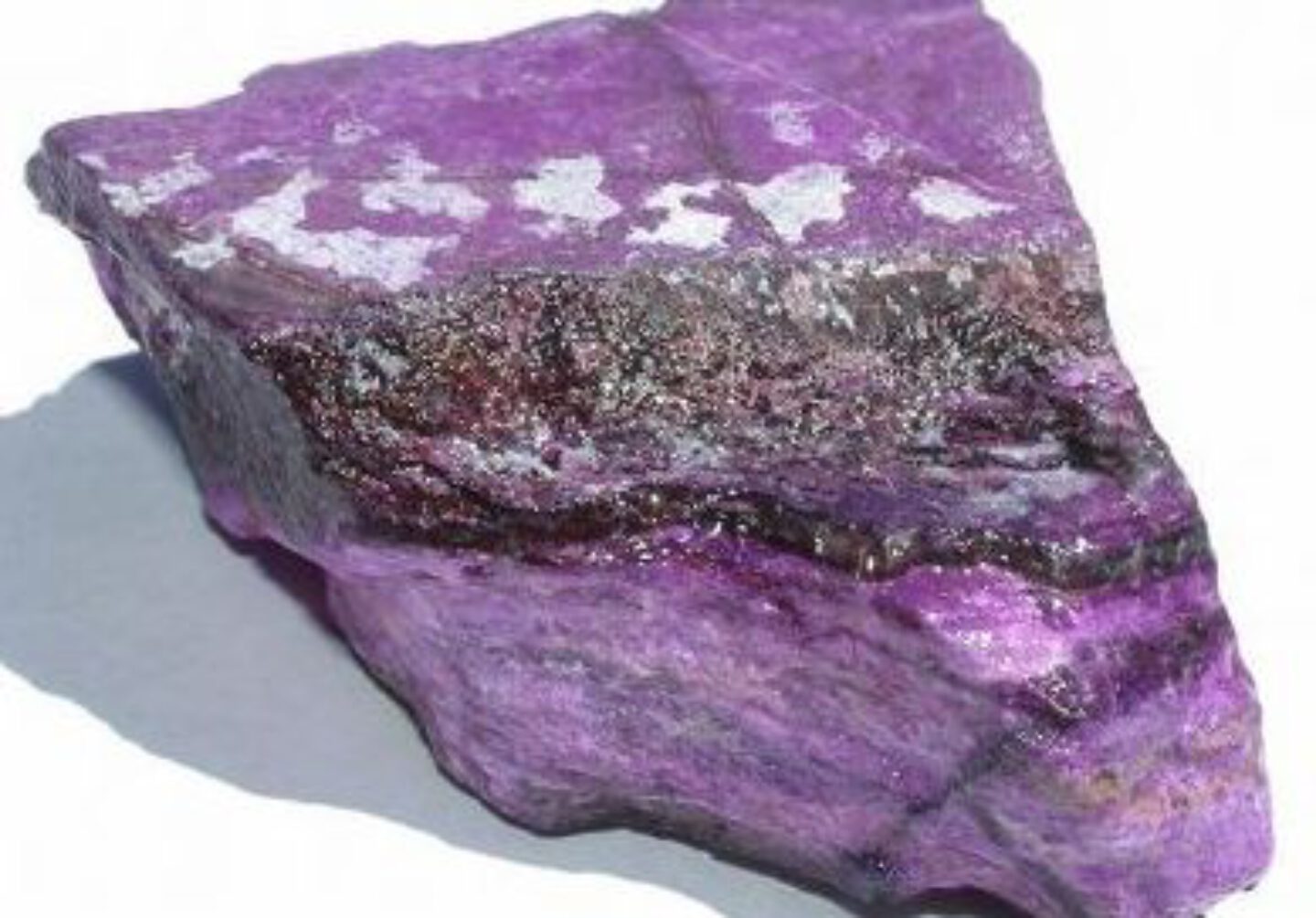 • Violett-rosa Mischungen: Häufige Qualität; Sugilith mit Einlagerungen von Weiss (Quarz, Natirol) oder Rosa